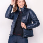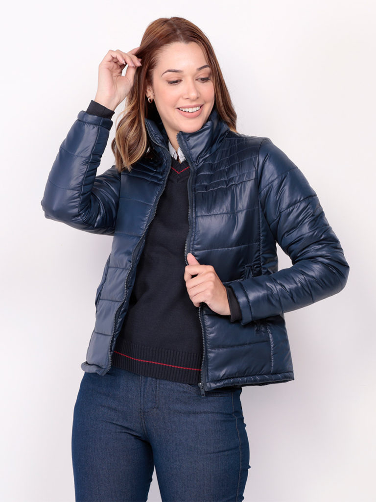 Jaqueta feminina gomos 10cm e 5cm na parte superior frente e costa, fibra 120, bolso com zíper comum, elástico fino no punho, barra no cós.