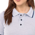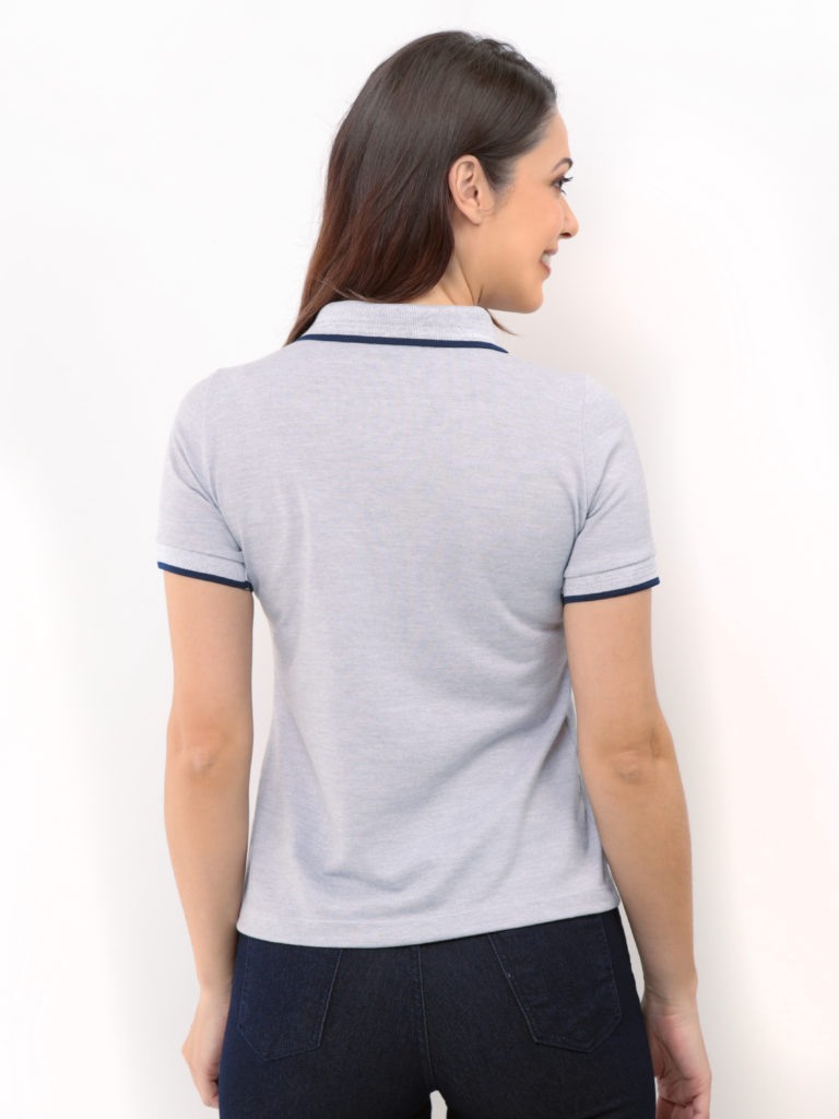 Camisa gola polo feminina, com detalhe na gola e punho.