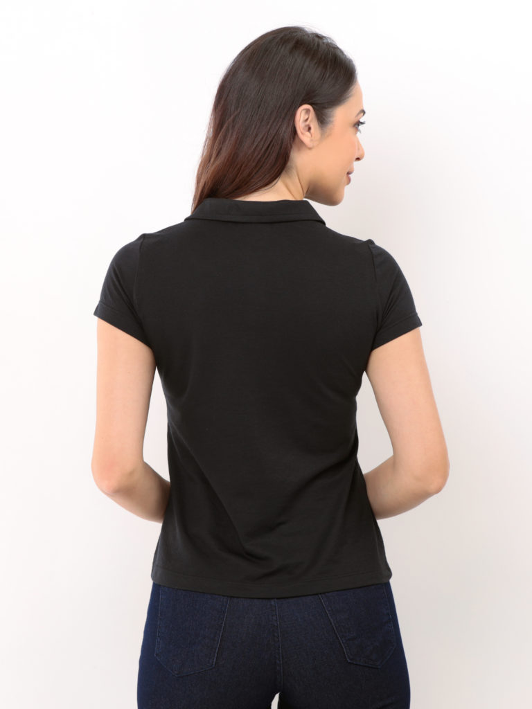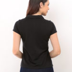 Camisa gola polo feminina, manga curta, tradicional sem detalhes.
