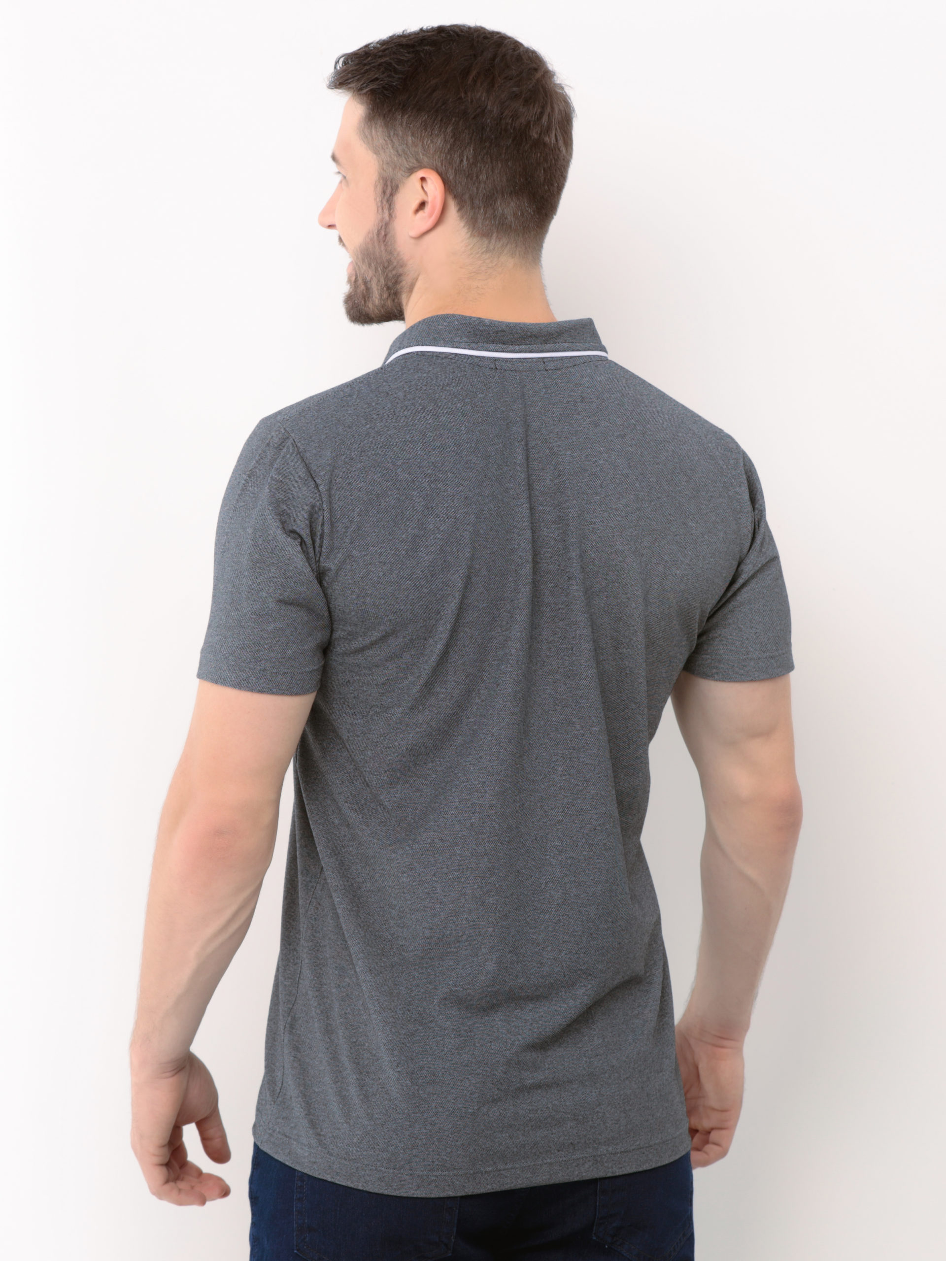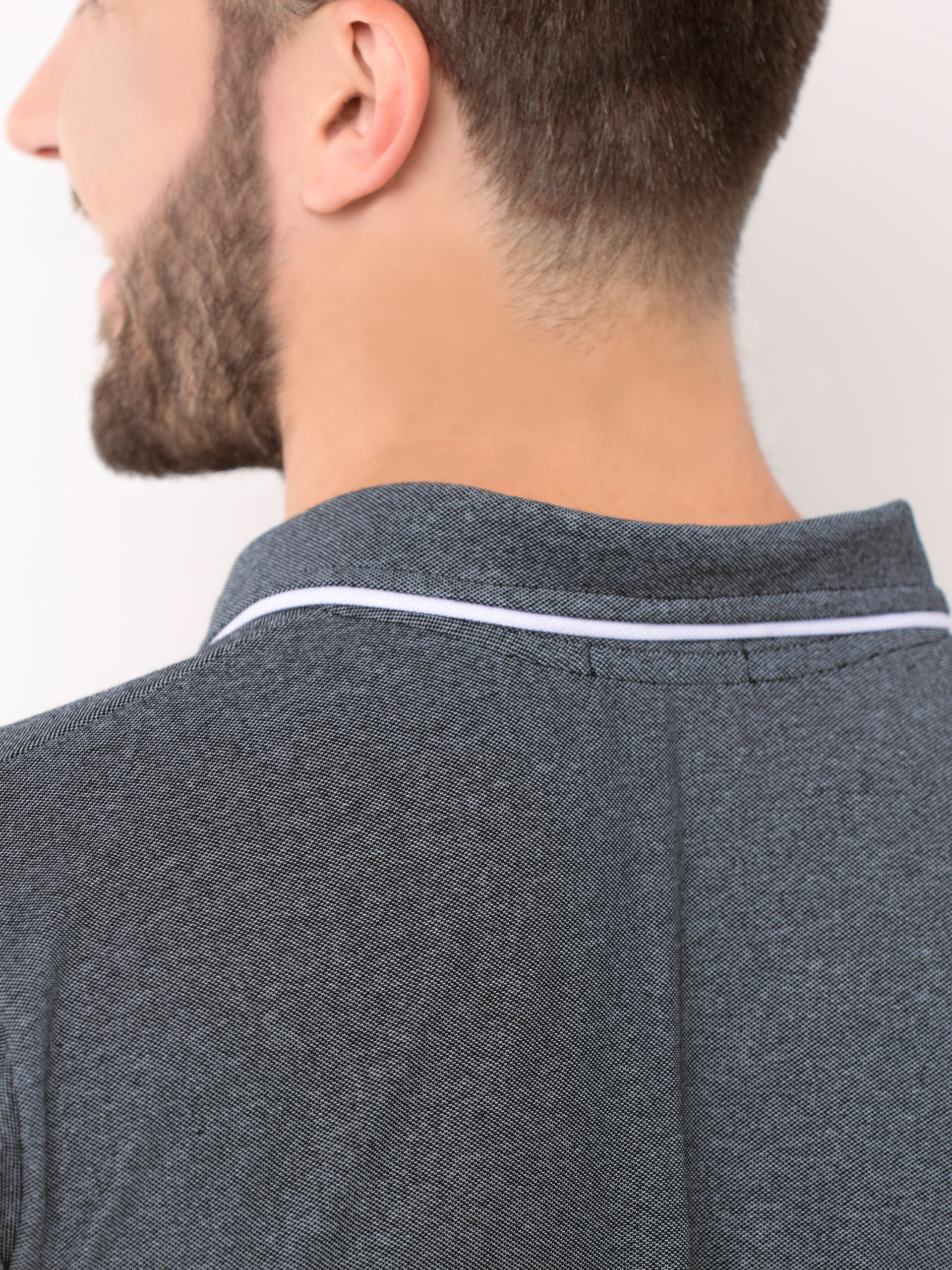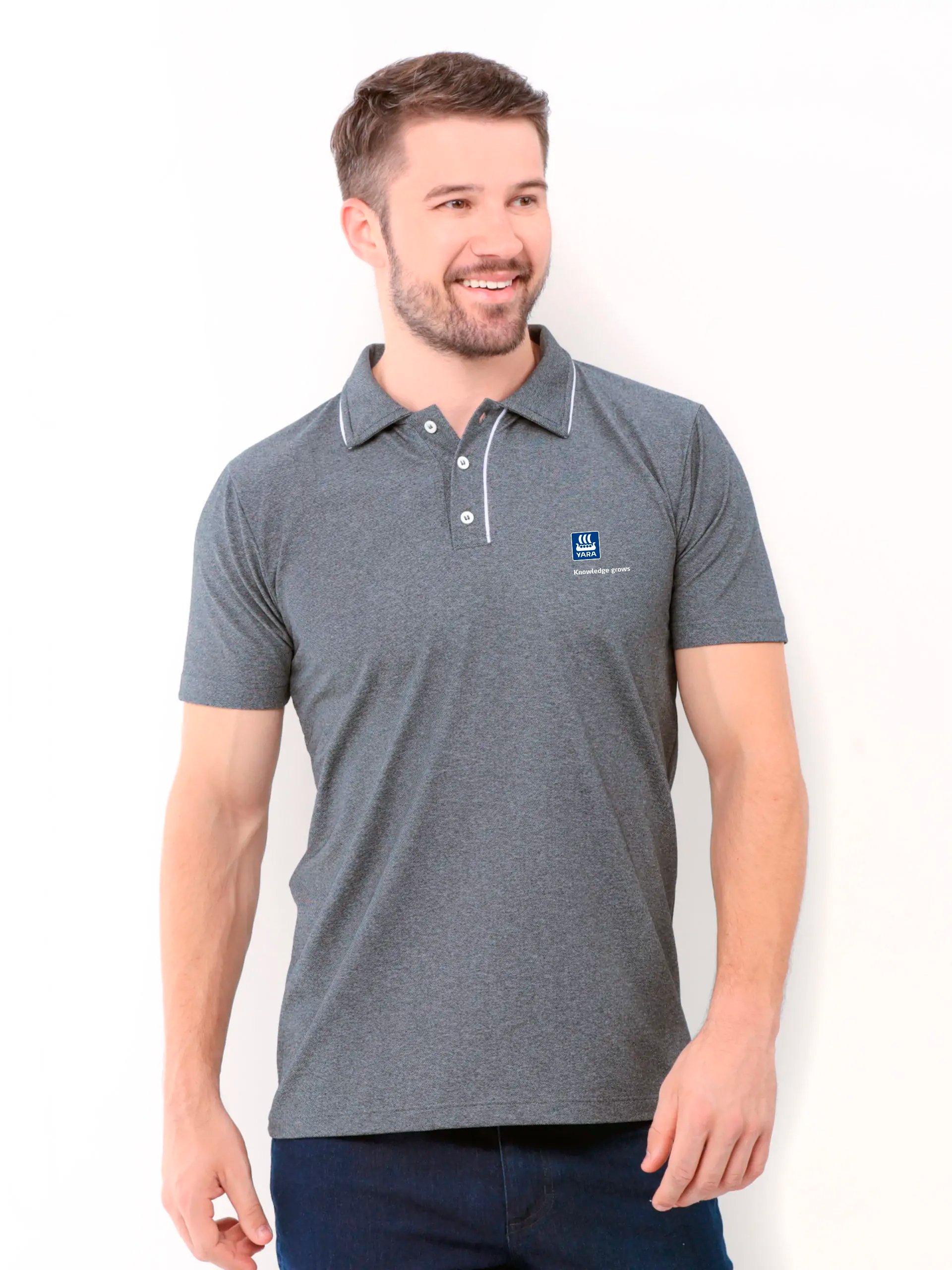 Camisa gola polo masculina, manga curta, com viés na gola e na frentinha da casinha.