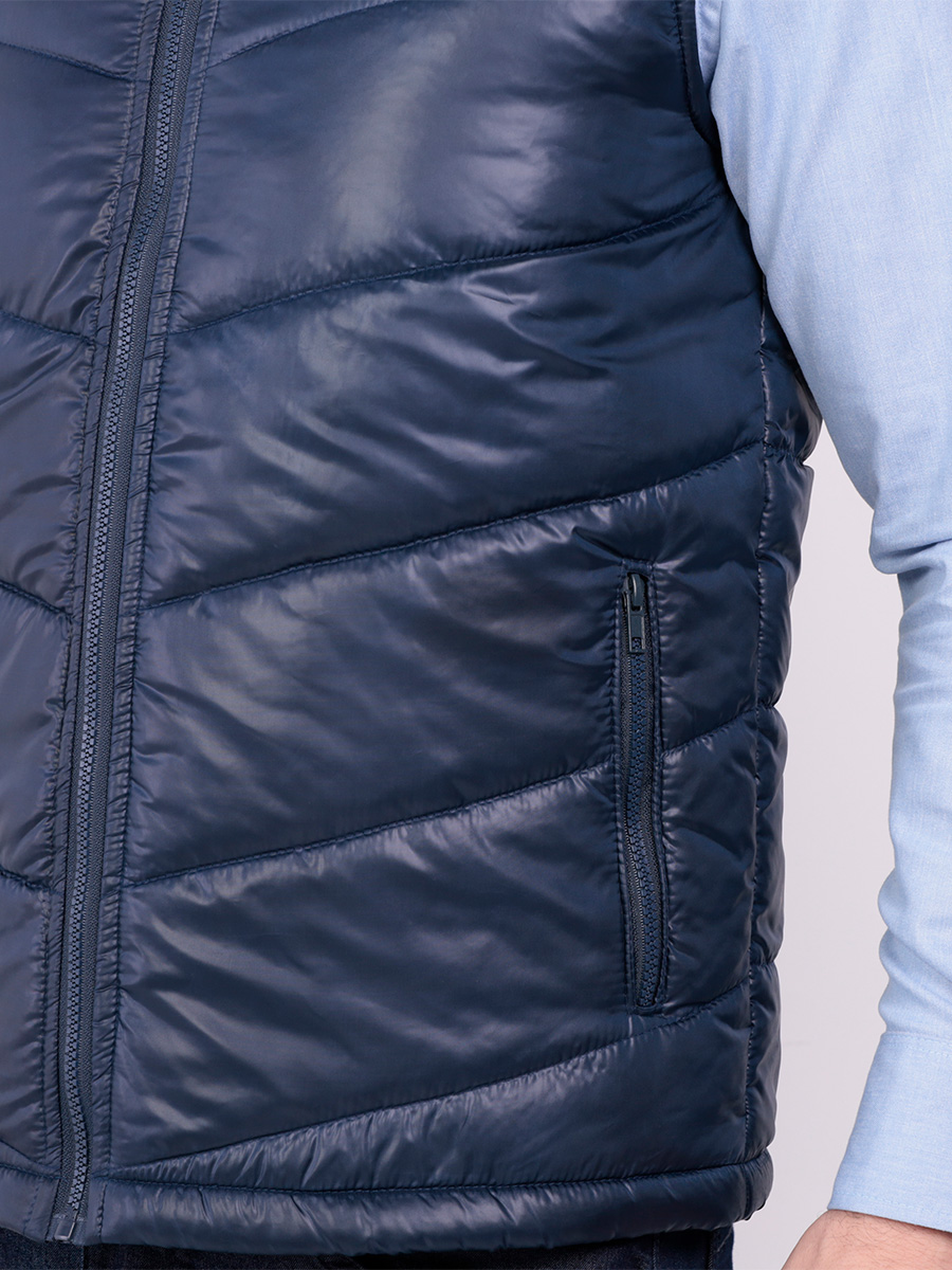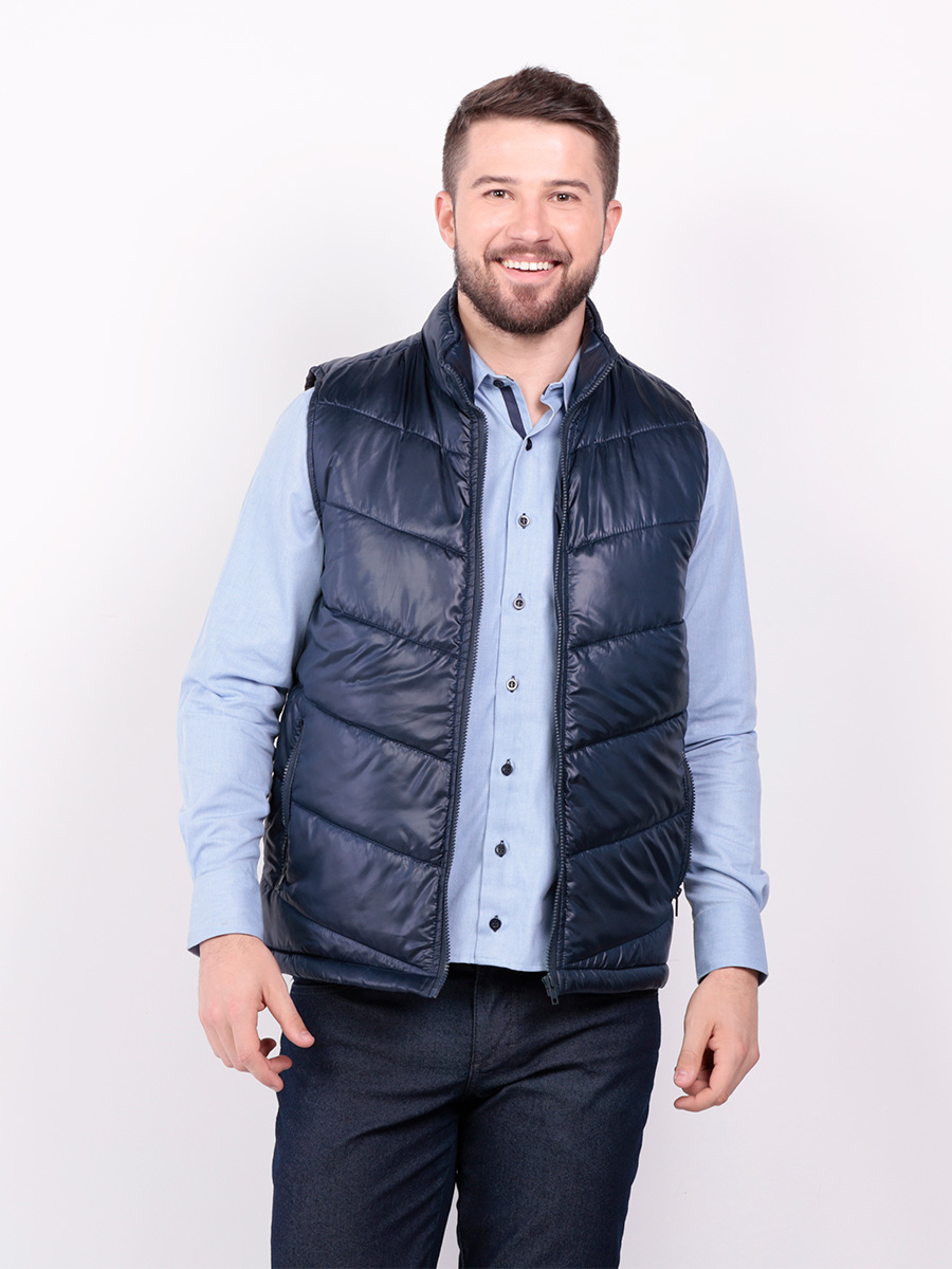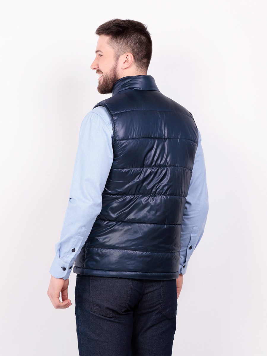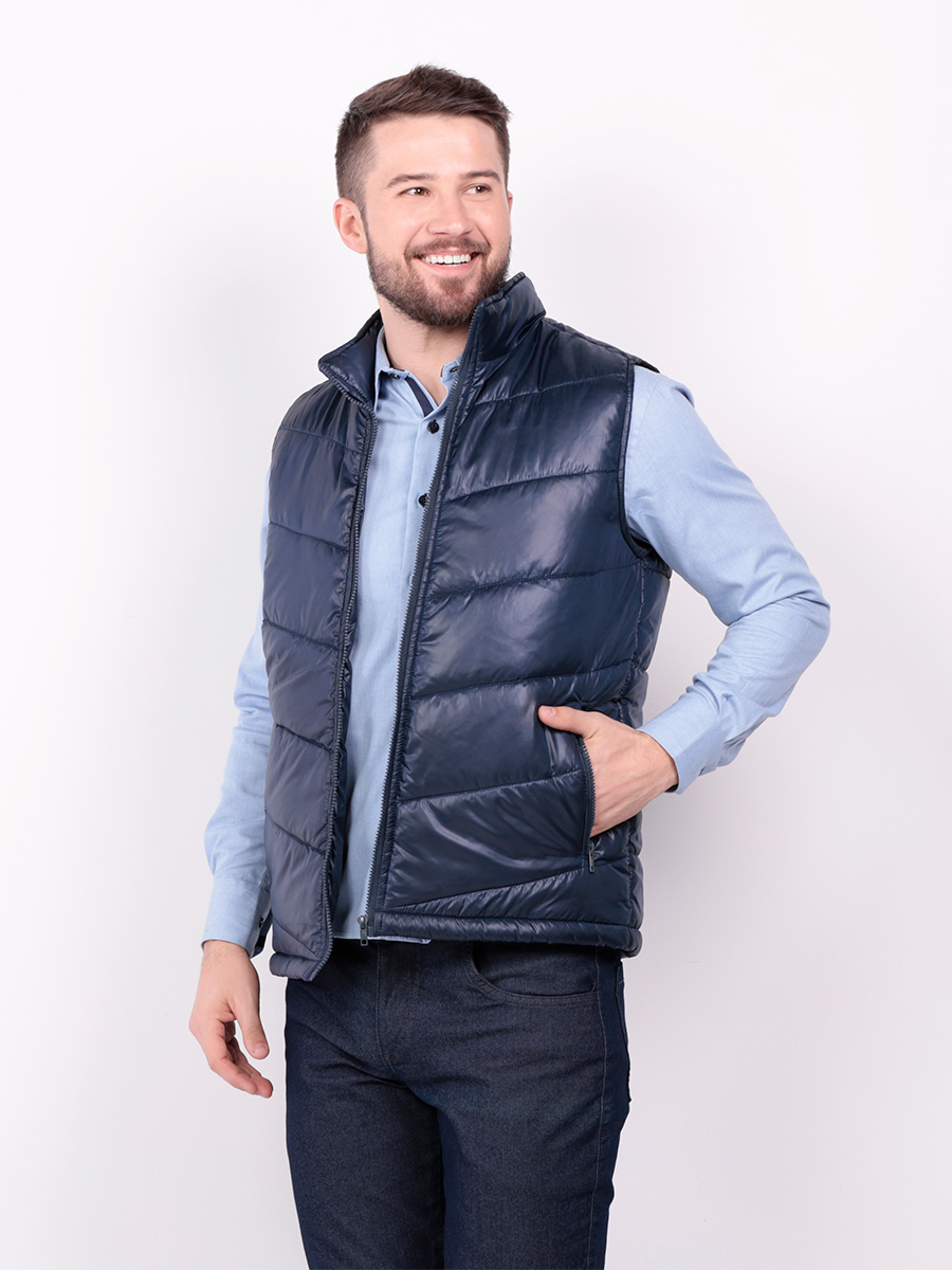 Colete masculino de gomo 10 cm e zíper nos bolsos.