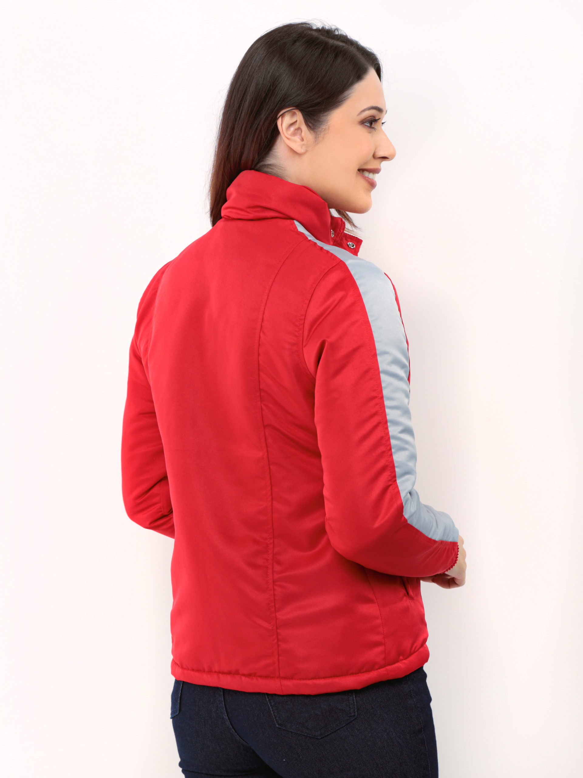 Jaqueta térmica feminina com detalhe colorido na manga.