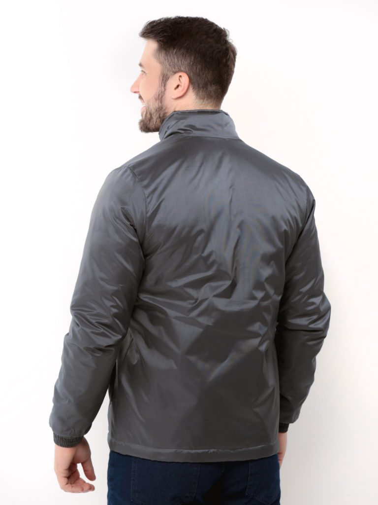 Jaqueta térmica masculina, barra nos punhos e cos, e bolso lapela.