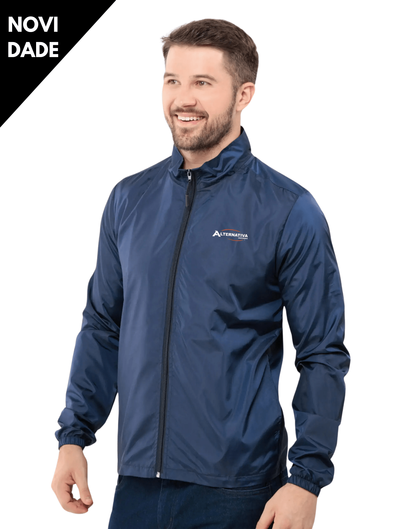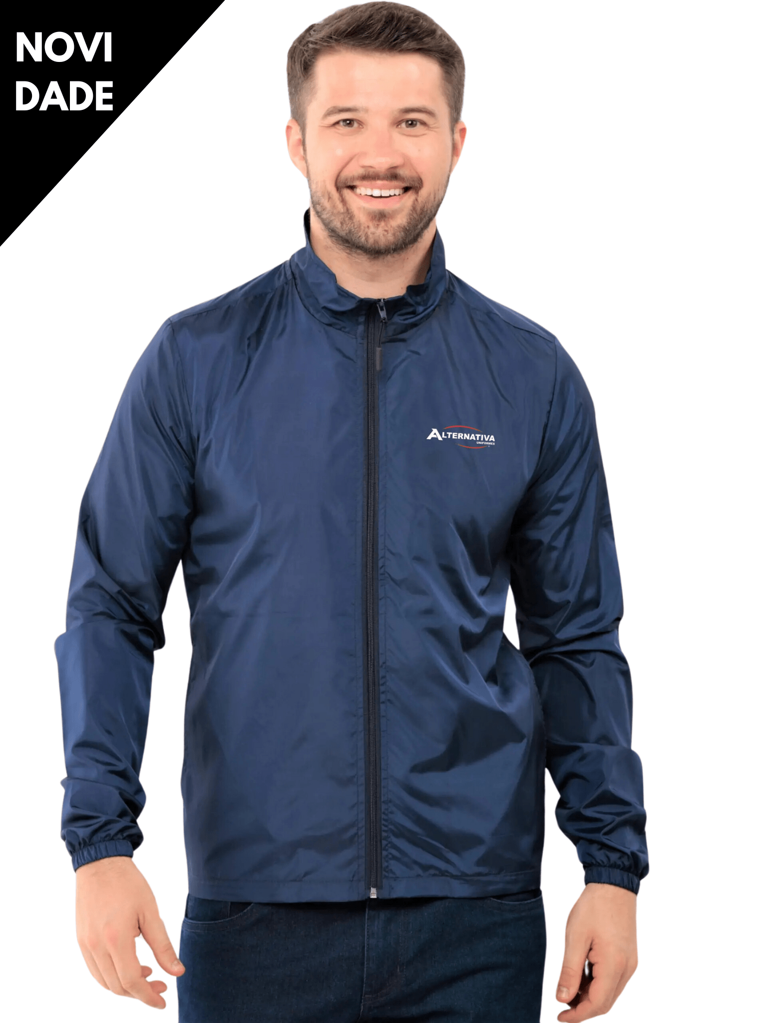 Jaqueta masculina leve, com punho de elástico.