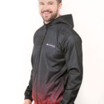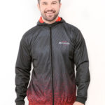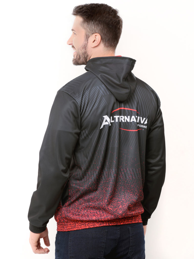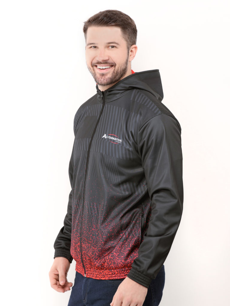Jaqueta masculina leve de helanca sublimada, com capuz