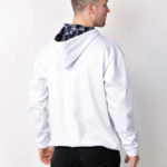 • Capuz com recorte no meio com barra, casinha e forro colorido;
