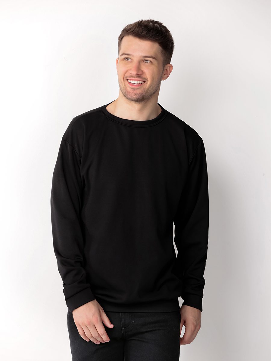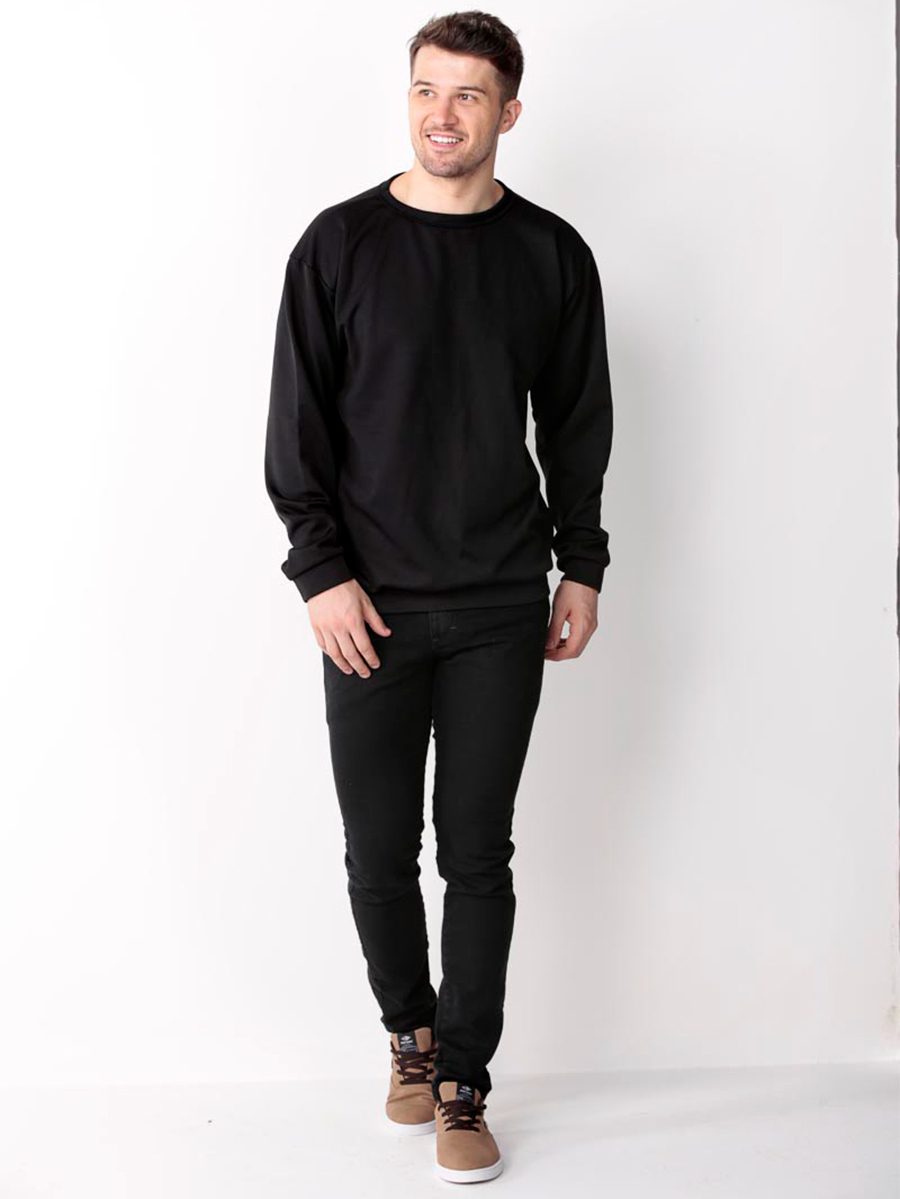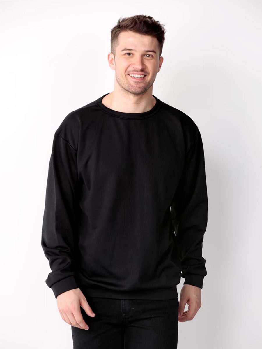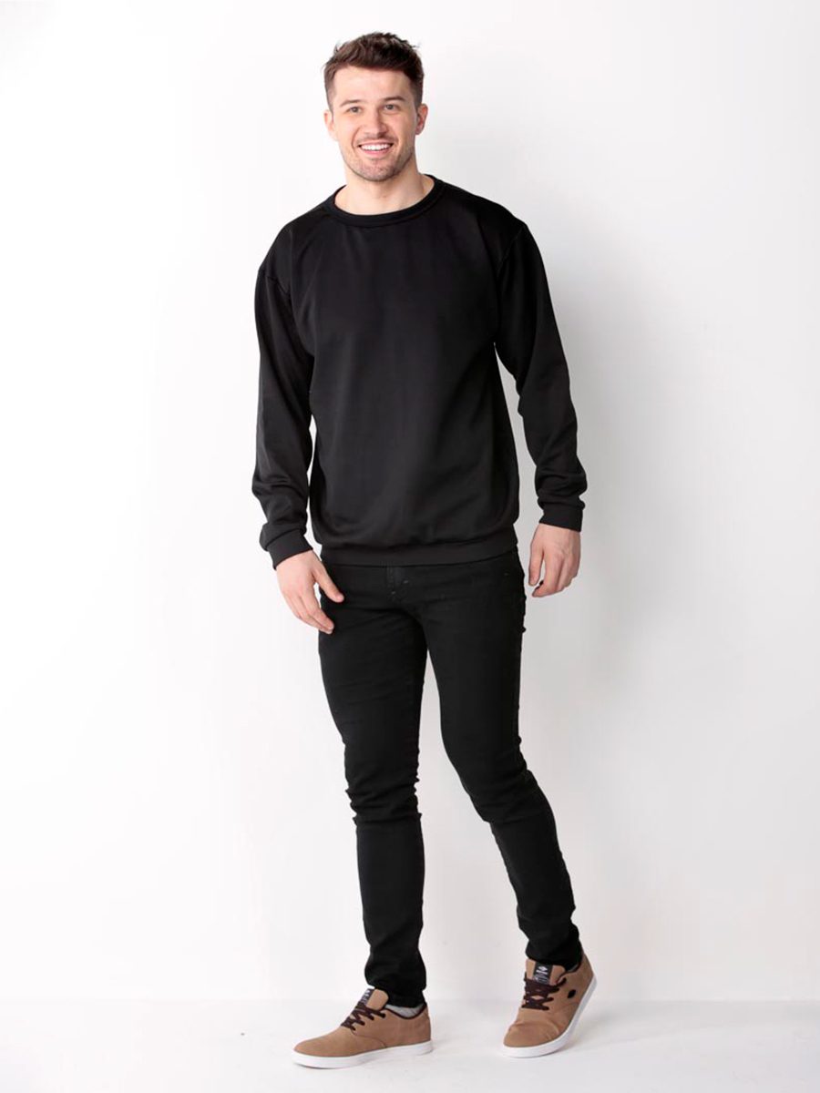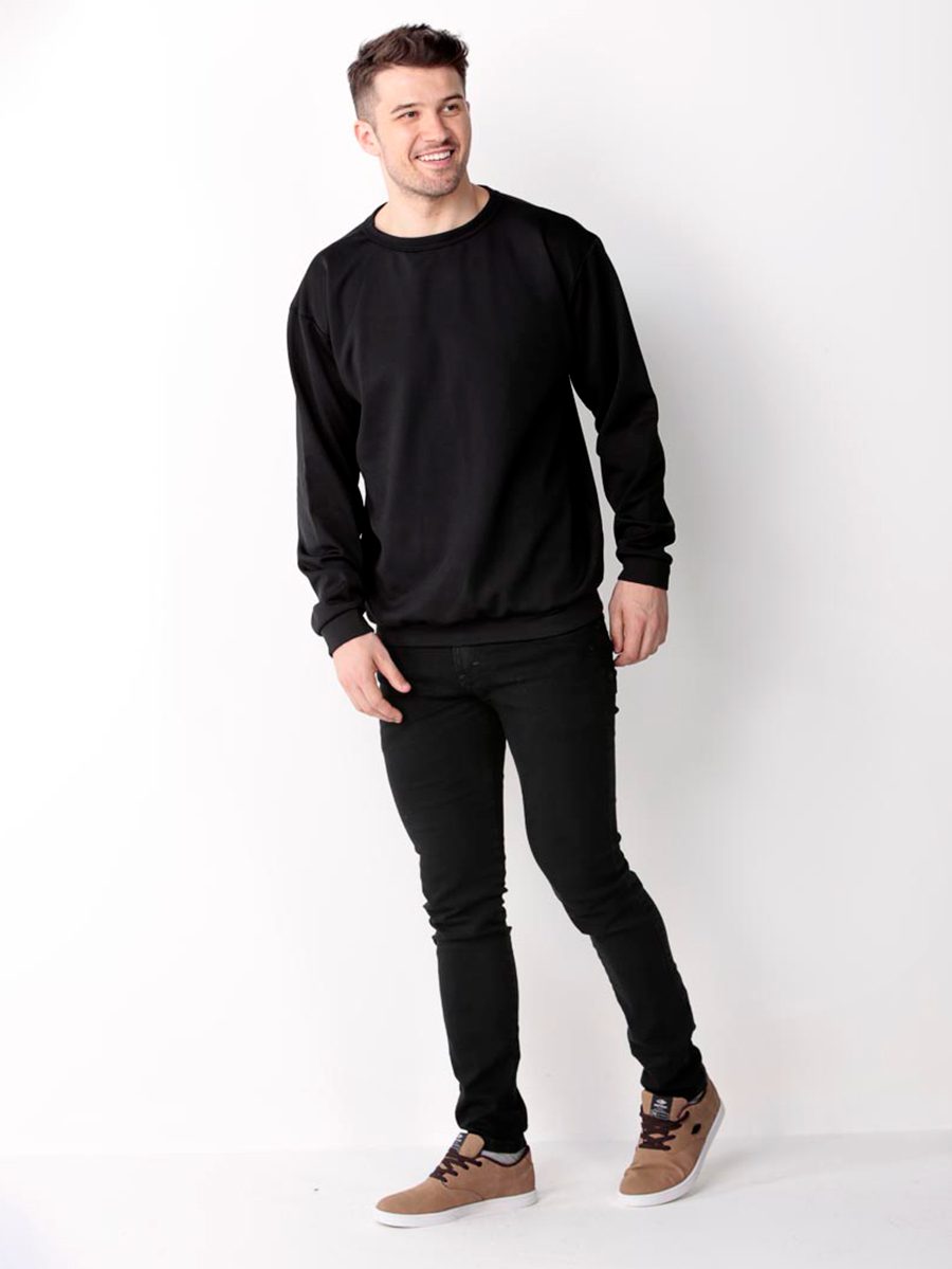 Moletom masculino tradicional com parte interna peluciada e ribana nas mangas, gola e cós.